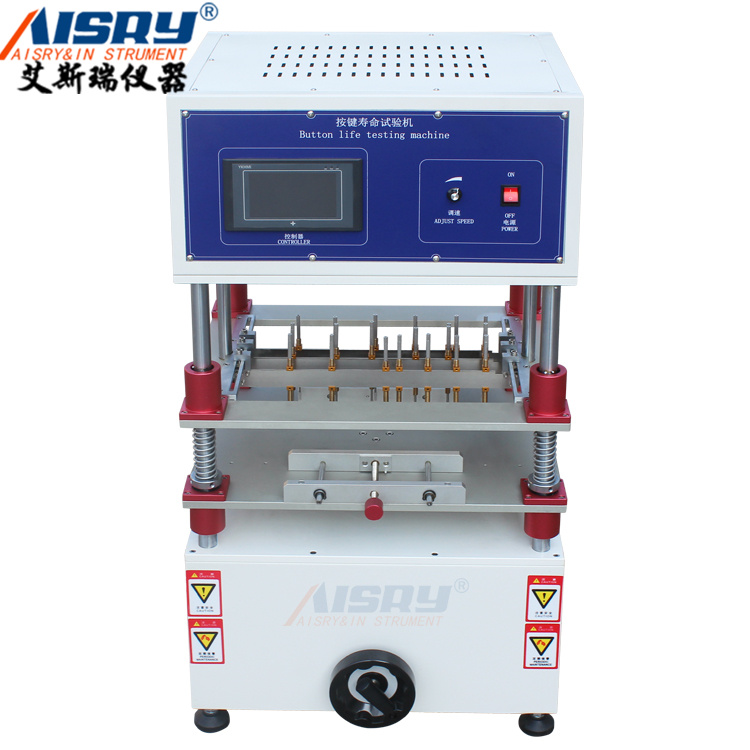 主要用于電腦鍵盤、Notebook、手機、金屬彈片、PDA之按鍵及各種按鈕、開關(guān)之耐久壽命試驗??赏瑫r測試數(shù)個產(chǎn)品(每個均可多點測試)另每個按鍵可設(shè)定不同壓力及不同高低。